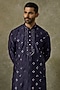 Featuring a navy blue straight kurta in silk blend base with mirror and resham work. It is paired with patiala pants. Perfect for pre-wedding ceremonies or festive occasions.