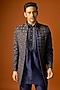 Featuring a navy blue indowestern in silk base with embroidery. It is paired with a kurta and pants. Accentuate it with mojaris for a festive occasion, reception, sangeet, wedding or engagement ceremony.