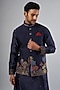 Navy Blue Tussar Resham Embroidered Bundi Jacket