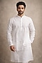 Featuring an off-white kurta in chanderi base. Style it with pants and mojaris for a festive occasion, pooja ceremonies or family functions.
