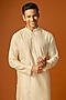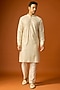 Featuring an off-white kurta in silk base with embroidery. It is paired with pants. Accentuate it with kolhapuris or embroidered juttis for an elegant yet easy going look, perfect for pooja ceremonies, festive gatherings or sangeet celebrations.