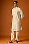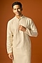 Featuring an off-white kurta in silk base with embroidery. It is paired with pants. Accentuate it with kolhapuris or embroidered juttis for an elegant yet easy going look, perfect for pooja ceremonies, festive gatherings or sangeet celebrations.