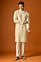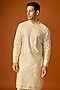 Featuring an off-white kurta in silk base with embroidery. It is paired with pants. Accentuate it with kolhapuris or embroidered juttis for an elegant yet easy going look, perfect for pooja ceremonies, festive gatherings or sangeet celebrations.