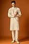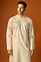 Featuring an off-white kurta in silk base with embroidery. It is paired with pants. Accentuate it with kolhapuri sandals for a festive occasion, cultural event, wedding or engagement ceremony.