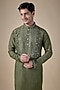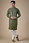 Featuring an olive kurta in silk base. It is paired with pants. Elevate this kurta set with kolhapuri sandals for a festive occasion, daytime pooja or intimate wedding?rituals.