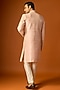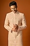 Featuring an orange sherwani in silk base with embroidery. It is paired with pants. Accentuate it with mojaris for a wedding or engagement ceremony.
