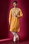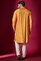 Featuring an orange kurta in tussar base with resham, threadwork hand and machine embroidery. It is paired with spun cotton pants. Perfect attire for a festive occasion, sangeet or engagement ceremony, exuding traditional charm and timeless elegance.