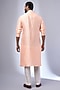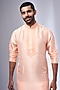 Featuring a peach handcrafted kurta in pure silk base with cutdana hand embroidery. It is paired with pants. Perfect wear for pooja ceremonies or festive occasions.