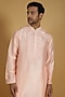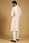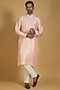 Featuring a peach kurta in pure silk base with kashmiri embroidery. Accentuate it with pants and kolhapuris for an elegant yet easy-going look, perfect for pooja ceremonies or festive gatherings.