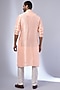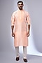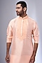 Featuring a peach kurta in pure silk base with kashmiri embroidery. Accentuate it with pants and kolhapuris for an elegant yet easy-going look, perfect for pooja ceremonies or festive gatherings.