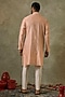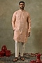 Featuring a peach straight kurta in silk blend base with mirror and resham work. It is paired with straight pants. Perfect for a sangeet ceremony or festive occasion.