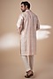 Featuring a peach tie-dye kurta in tussar base with resham and threadwork. It is paired with spun cotton pants. Perfect wear for a sangeet or festive ceremony.