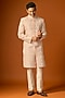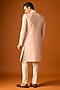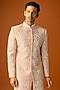 Featuring a pink sherwani in silk base with embroidery. It is paired with pants. Accentuate it with mojaris for a wedding or engagement ceremony.