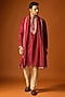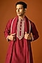Featuring a red kurta in silk base with embroidery. It is paired with pants and a stole. Accentuate it with kolhapuris or embroidered juttis for an elegant yet easy going look, perfect for pooja ceremonies, festive gatherings or cultural celebrations.