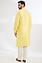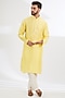 Featuring a yellow kurta in pure chanderi base with machine embroidery. Accentuate it with pants and kolhapuris for an elegant yet easy-going look, perfect for pooja ceremonies, festive gatherings or haldi ceremony.