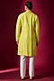Featuring a yellow kurta in tussar base with resham, threadwork hand and machine embroidery. It is paired with spun cotton pants. Perfect attire for a festive occasion, haldi or engagement ceremony, exuding traditional charm and timeless elegance.