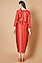 Featuring a vermillion red and brown striped midi dress in japan satin base.