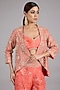 Coral Pure Chanderi Silk Hand Embroidered Jacket Set