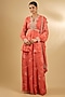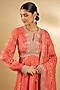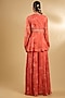 Featuring a coral peplum kurta in pure georgette base with floral print and hand embroidery. It is paired with floral printed sharara pants and a hand embroidered dupatta. Accentuate it with statement jewellery and heels for a festive occasion or pooja ceremony.