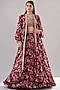 Featuring a fuschia lehenga in chanderi silk base with paisley print. It is paired with a hand embroidered blouse and a jacket. Style it with statement jewellery and heels for sangeet or wedding ceremony.