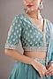 Featuring an ice blue lehenga in georgette and organza base. It is paired with a matching hand embroidered blouse and a dupatta.