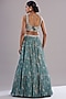 Featuring an ice blue lehenga in georgette base with print. It is paired with a matching blouse having zardosi hand embroidery and a dupatta.