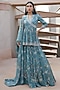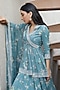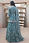 Featuring an ice blue lehenga in georgette base with magnolia print. It is paired with a matching printed peplum having hand embroidery and a printed dupatta.