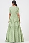 Featuring a mint green lehenga in a georgette base. It is paired with a peplum top having floral print and hand embroidery and a dupatta. Accentuate this designer set with statement jewellery and heels for a complete look, ideal for a festive occasion or mehendi ceremony.