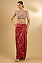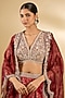 Featuring a red cape in pure silk organza base with floral print and hand embroidery. It is paired with a pure silk crepe blouse having pearl, zardosi and crystal hand embroidery, including a printed pre-draped skirt. Accentuate it with statement jewellery and heels for a sangeet ceremony.