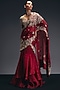 Red Silk Organza Sequins Embroiderde Draped Ruffled Saree Set