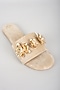Beige Vegan Faux Leather Floral Embroidered Flats