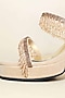 Featuring a pair of gold heels in synthetic leather base with dangling bead embellishment. It has a PU leather and 4-inch heels. Designed for both style and comfort, these heels add a touch of elegance to any outfit, perfect for festive occasions, wedding or evening parties.