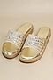 Featuring a pair of gold wedges in synthetic leather base with mirror embellishments. It has a PU leather, soft footbed and 1-inch heels. Designed for both style and comfort, these heels add a touch of elegance to any outfit, perfect for weddings, festive occasions, and ethnic or fusion outfits.