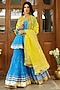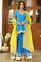 Featuring a firozi blue peplum kurta in soft chanderi base with mirror, aari and gota embroidery. It is paired with mirror work sharara pants and a yellow mirror work dupatta. Accentuate it with polki jewellery and heels for a festive occasion or sangeet ceremony.