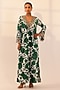 Featuring a green-white floral kaftan in velvet base with hand embroidery. Accentuate with statement earrings and heels for a family gathering.