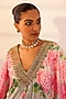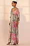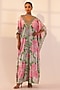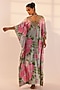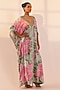 Featuring a mint green-pink floral kaftan in velvet base with hand embroidery. Accentuate with statement earrings and heels for a family gathering.