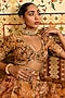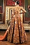 Featuring a peach and gold kalidar lehenga in tissue silk base with floral print and hand-beaten gota work. It is paired with a printed blouse and a tissue silk dupatta. Accentuate it with statement jewellery and heels for a wedding or engagement ceremony.