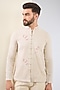 Featuring a beige shirt in cotton base with thread embroidery. It is paired with pants. Style it with classic mojaris and a statement watch for a refined and elegant look.