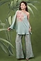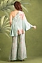 Featuring a multi-colored one shoulder asymmetrical kaftan in dupion silk base with placement print and hand embroidery. It is paired with printed pants having lace embroidery. Style with metallic heels, a sleek ponytail, and minimal jewellery. Ideal for festive parties, sangeets, or chic evenings.
