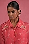 Featuring a multi-colored shirt in sheer organza base with hand embroidery. It is paired with cotton silk pants and a chiffon bustier. Style with metallic heels, a sleek ponytail, and minimal jewellery. Ideal for festive gatherings, family functions, and daytime celebrations.