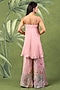 Featuring a multi-colored A-line top in organza base with asymmetrical hemline and hand embroidery. It is paired with dupion silk printed and embroidered palazzo pants. Style with metallic heels, a sleek ponytail, and minimal jewellery. Ideal for festive gatherings, family functions, and daytime celebrations.