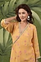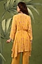Featuring a yellow overlap top in wrinkle chiffon base with floral print and lace embroidery. It is paired with rayon pants having lace details and an inner. Style with metallic heels, a sleek ponytail, and minimal jewellery. Ideal for festive gatherings, family functions, and daytime celebrations.