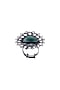 Featuring a black rhodium finish ring studded with green chalcedony, set in silver.