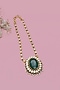Featuring a 24 kt gold plated handcrafted pendant necklace studded with moissanite and green onyx, set in silver.