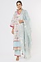 Featuring a light blue kurta in cotton base with gota floral embroidery. It is paired with matching pants and an embroidered dupatta.