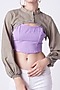 Featuring a grey crop shirt in handwoven cotton khadi base with hand embroidery and bishop sleeves. It is paired with a contrasting purple bustier. This contains only two pieces.