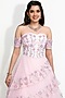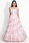 Featuring a pink gown in organza base with 3D floral, pearls, and cutdana hand-embroidered flowers.