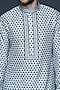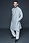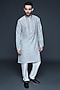 Featuring a charcoal grey kurta for boys in cotton silk base with block print and hand embroidery on the placket. It is paired with pants. Style it with a watch and a classic pair of shoes for a festive occasion or wedding ceremonies.