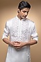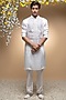 Featuring an ivory kurta in modal and cotton silk base with hand embroidery. It is paired with matching pants.