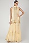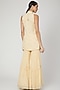 Featuring a beige halter neck kurta in georgette base with sequins and gota dori embroidery including tassels. It is paired with matching sharara pants and a net dupatta.
